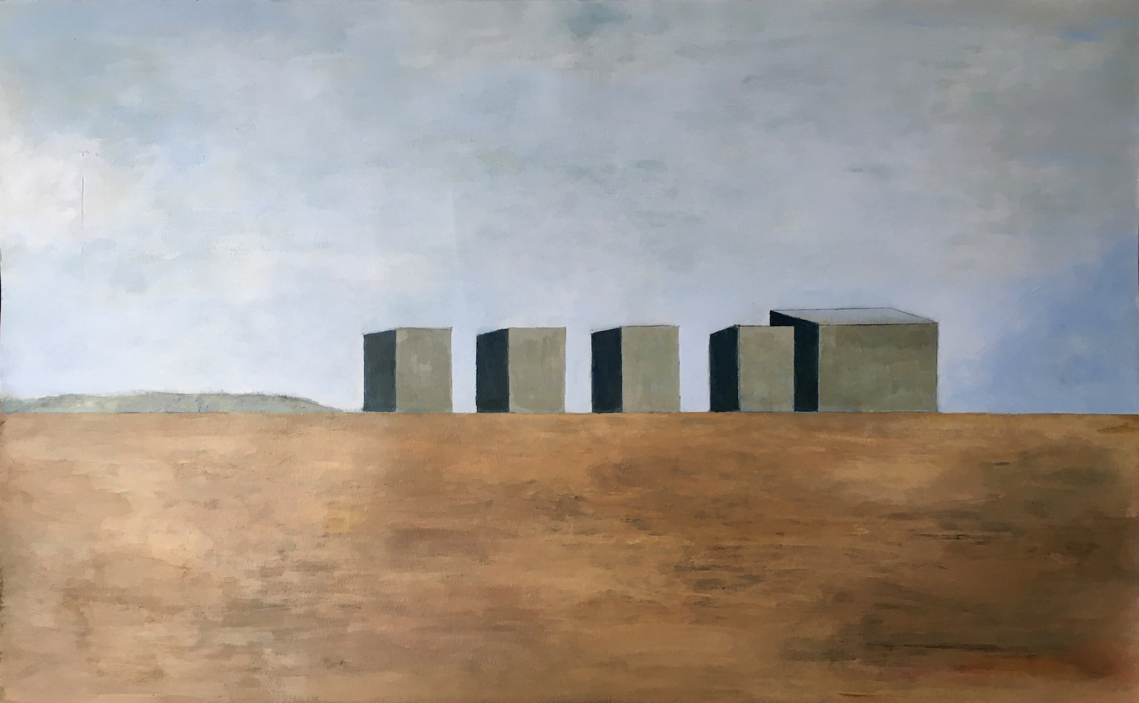 Five Buildings, Acrylic painting on acid free paper, 70 x 100 cm, 2018